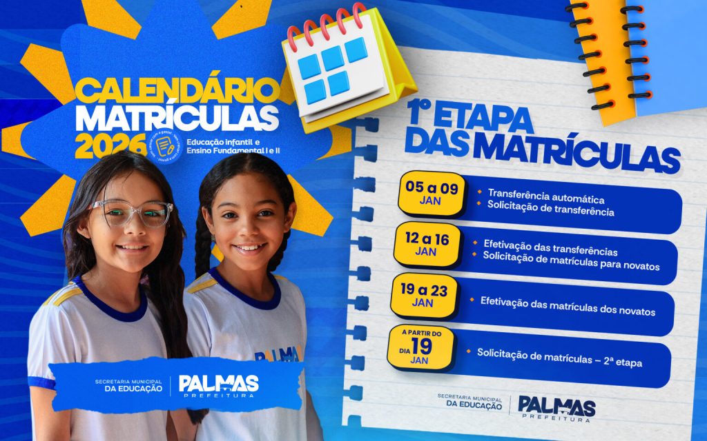 A Prefeitura de Palmas, por meio da Secretaria Municipal Educação (Semed), inicia nesta segunda-feira, 5, o período de transferência automática e solicitação de transferências de estudantes da rede municipal de ensino de Palmas referente ao ano letivo de 2026. Já a partir do dia 12, abre o prazo para solicitação de matrículas de estudantes novatos, […]